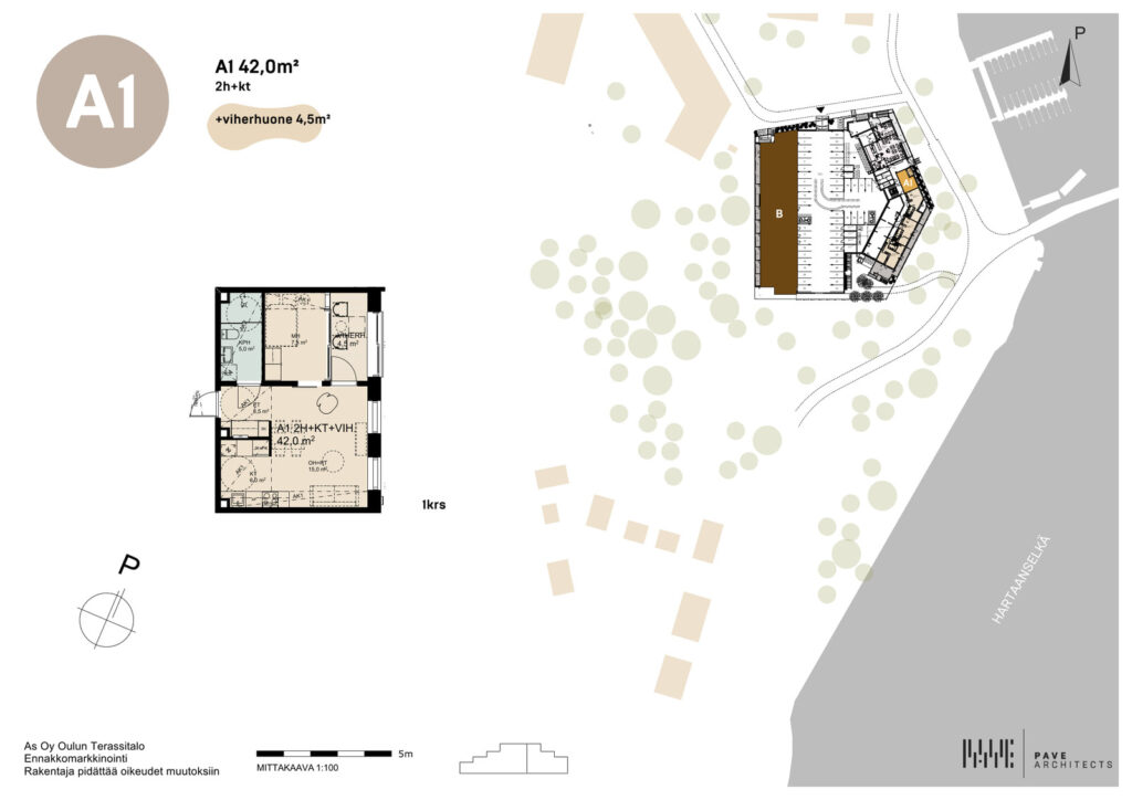 As Oy Oulun Terassitalot rakennetaan Oulun Asuntomessualueelle, kortteliin 44. Vaakunakyläntie 12, 90510 Oulu. A1huoneisto sijaitsee 1-kerroksessa. Huoneistosta on huikeat vesistönäkymät Hartaanselälle. Oma viherhuone !