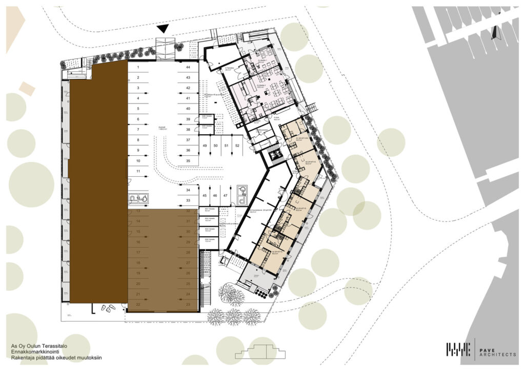 Kauniin Oulujoen suistomaisemaa siivittämät asunnot tulevat viiteen kerrokseen. Talojen porrasmainen muoto mahdollistaa päädyissä oleville asunnoille asuinneliöiden lisäksi myös hulppeat kattoterassit. Asuntojen koot vaihtelevat suurista kaksioista isompiin perheasuntoihin ja jopa 147 m2 huoneistoon, jossa lisänä lähes samankokoinen terassi! Asuntoja on myös kahdessa kerroksessa Loft -tyylisesti, jolloin maiseman saa asuntoihin molemmissa kerroksissa! Kohteen suunnittelijana toimii Oululainen Pave Arkkitehdit Oy.