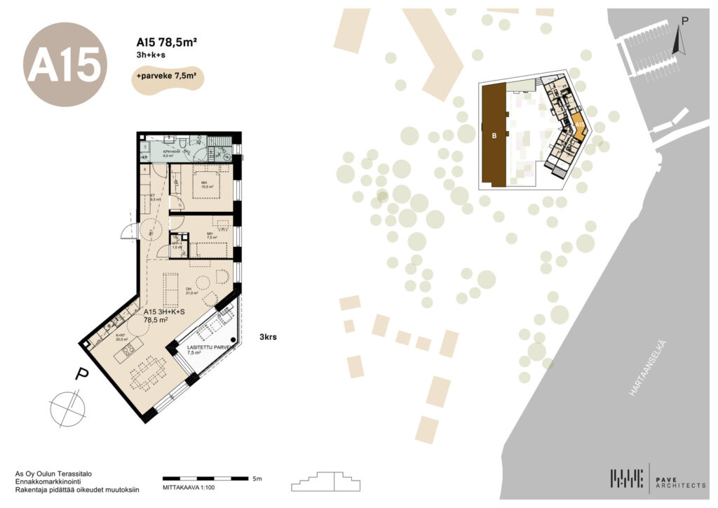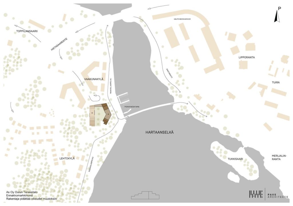 As Oy Oulun Terassitalot rakennetaan Oulun Asuntomessualueelle, kortteliin 44. Vaakunakyläntie 12, 90510 Oulu. A15 huoneisto sijaitsee 2-kerroksessa, josta huikeat Hartaanselkä näkymät.