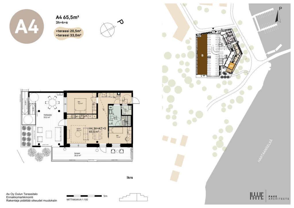 Kauniin Oulujoen suistomaisemaa siivittämät asunnot tulevat viiteen kerrokseen. Talojen porrasmainen muoto mahdollistaa päädyissä oleville asunnoille asuinneliöiden lisäksi myös hulppeat kattoterassit. Asuntojen koot vaihtelevat suurista kaksioista isompiin perheasuntoihin ja jopa 147 m2 huoneistoon, jossa lisänä lähes samankokoinen terassi! Asuntoja on myös kahdessa kerroksessa Loft -tyylisesti, jolloin maiseman saa asuntoihin molemmissa kerroksissa! Kohteen suunnittelijana toimii Oululainen Pave Arkkitehdit Oy.