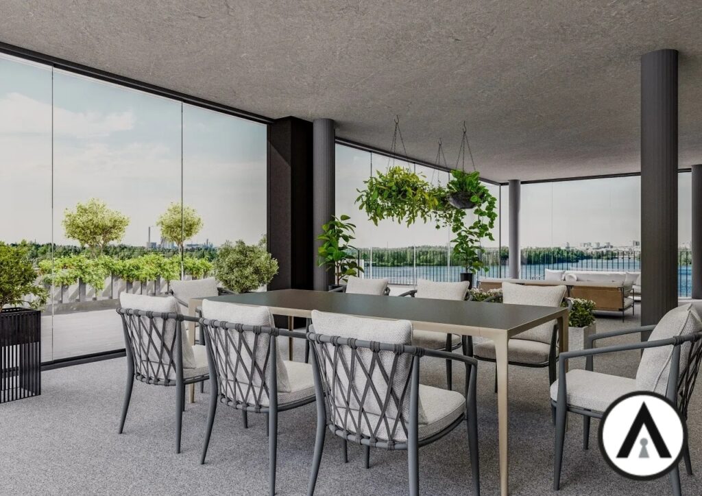 As Oy Oulun Terassitalot rakennetaan Oulun Asuntomessualueelle, kortteliin 44. Vaakunakyläntie 12, 90510 Oulu. A24 huoneisto sijaitsee 4-kerroksessa, josta on upeat vesistönäkymät Hartaanselälle ja huikea 68,5 m² lasitettu parveke ja 53,5m2 kattopiha.